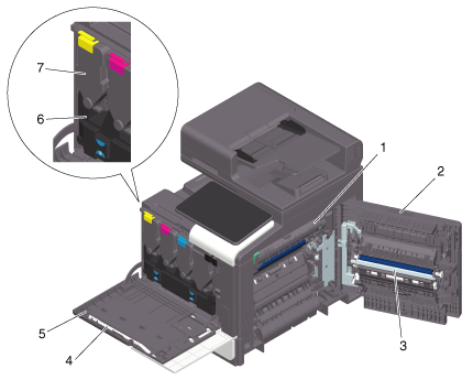 7 | Toner Cartridge | This machine provides Toner Cartridge in four colors: cyan (C), magenta (M), yellow (Y), and black (K). A full-color image is created by combining the four toner colors. |