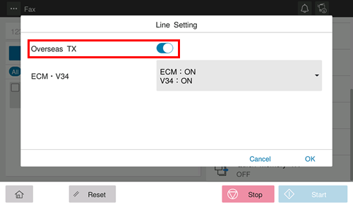 The Overseas TX Mode function reduces the transmission speed (the information transfer speed) for sending a fax.