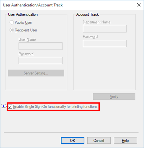 You can set the [Single Sign-On] option to [Enable] if you have set the [User Authentication] to [ON (External Server)] or [ON (MFP) + ON (External Server)].
