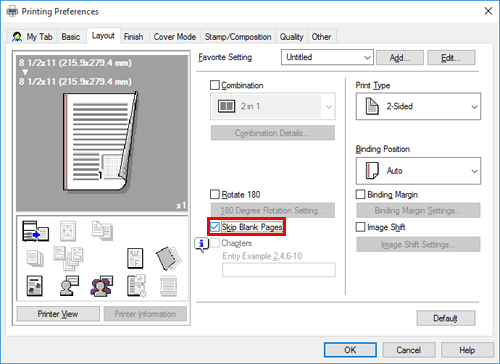 > Printing in the Windows Environment > Printing Options > Skipping Blank Pages for Printing ([Skip Blank Pages])