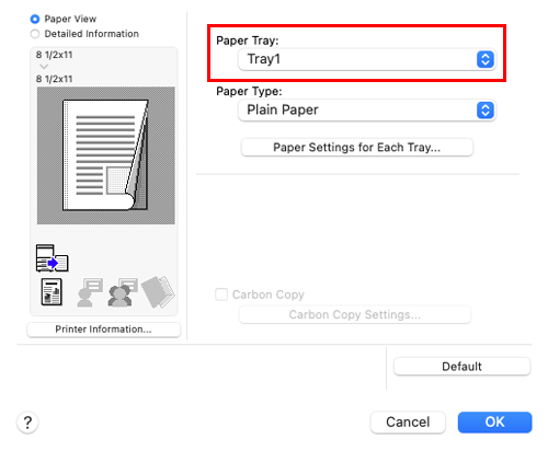 [Paper Tray] | Select the paper tray for printing the specified pages. | |