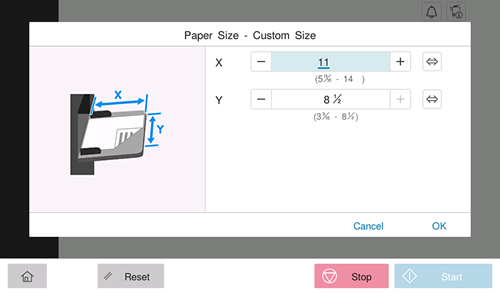 Selecting [Custom Size] from the drop-down list allows you to directly enter and specify the length and width of paper. For details, refer to Specifying the custom size.