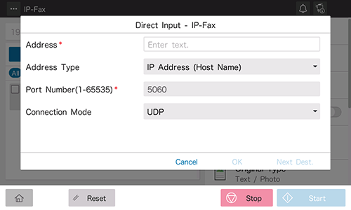 Settings of [Direct Input - IP-Fax]