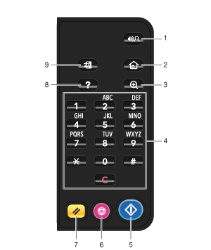 5 | Start | Starts an operation such as copying, scanning, faxing, or printing. |
