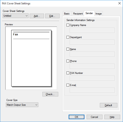 When you click [Add...], the cover sheet image is saved and you can recall it later by selecting [Cover Sheet Settings].