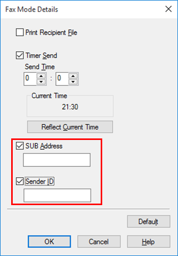 [SUB Address]: Enter the Confidential User Box number of the recipient.