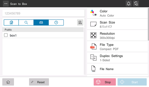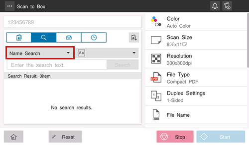 If [Search Box No.] is selected in step 1, enter the User Box No. you want to search for.