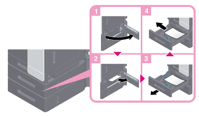 When removing pieces of paper in the paper tray (Tray 2/3/4)