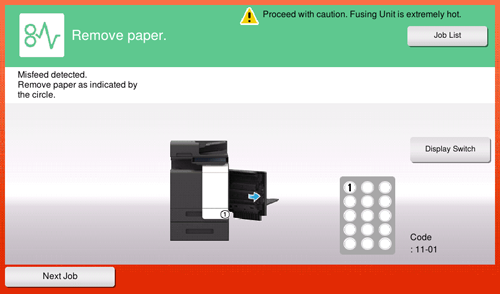 A paper jam may occur in a location other than the location displayed on the screen of this machine. Also, check the locations not displayed on the screen.