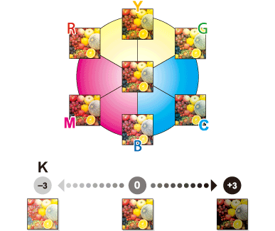 [Hue] | Adjust the hue. The hue refers to a color trend relative to discrete colors such as red, blue and yellow. By adjusting the hue, the image can attain more reddish or bluish tone, for example. |