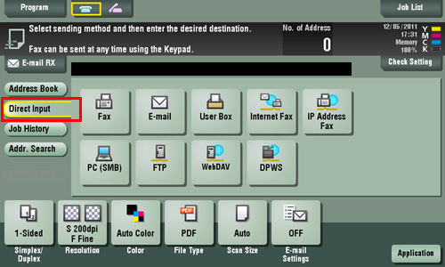 [Address Type] | The destination type selected in the [Direct Input] are displayed. |