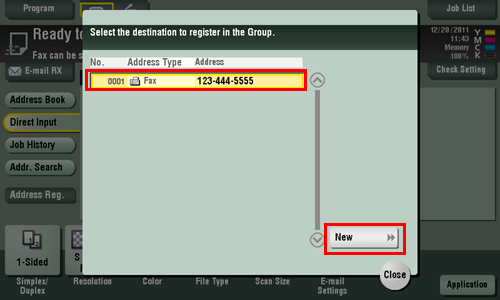 When a fax has been sent to the directly entered fax number, tap [Address Book] and check that the fax number is registered.