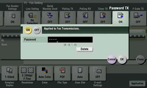[ON]/[OFF] | Select [ON] to specify Password TX. |