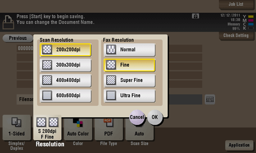 [Fax Resolution] | Select a resolution to use to scan the original for fax transmission. To use Fax TX, Internet Fax, or IP Address Fax, scan the original in the following resolution.
