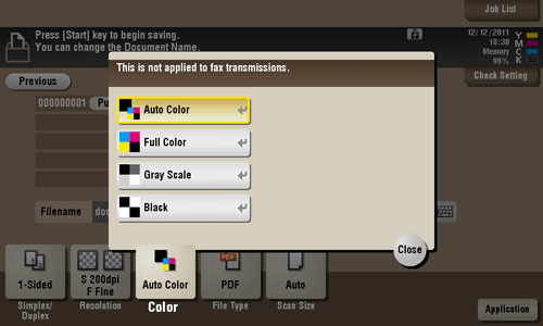 [Auto Color] | Scan by automatically selecting either [Full Color] or [Gray Scale] according to the original color. |
