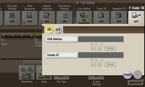 F code is a communication procedure that is standardized by CIAJ (Communications and Information Network Association of Japan). Confidential TX and Relay Distribution are available if a remote machine supports F-code communications.