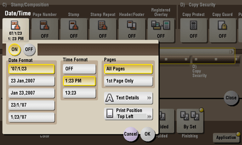 You can select a print position and format, and add the date and time. The date and time can be printed either on all pages or only on the first page.