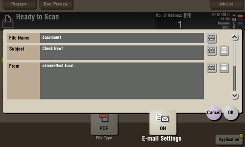 If user authentication is installed on this machine, the E-mail address of the login user is used as sender E-mail address.