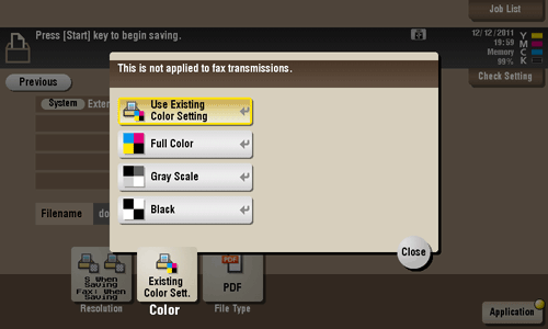 [Use Existing Color Setting] | Saves the file in the same color mode as used during storage in an external memory. |