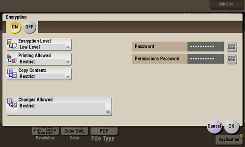 If [Encryption Level] is set to [High Level], you can permit printing of PDF files only in low resolution ([Low Resolution]).