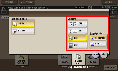 If [4 in 1] or [8 in 1] is selected, you can set the combined page layout to [Horizontal] or [Vertical].