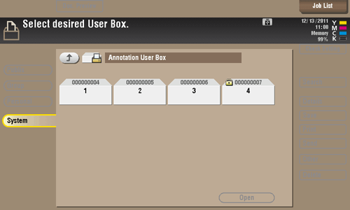 To access a file in this User Box, select the desired User Box, then tap [Open].
