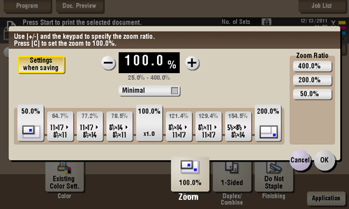 [Zoom Ratio] | Prints the original in the preset scale. |