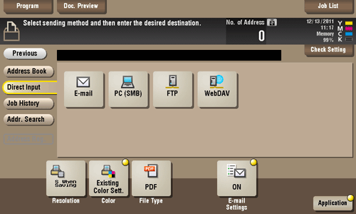 [E-mail] | Enter the destination mail address to send files attached to the E-mail to. |