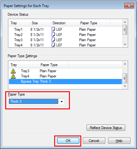 Check the paper tray and paper type settings automatically changed, then click [Yes].