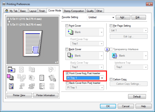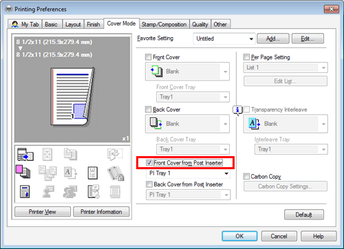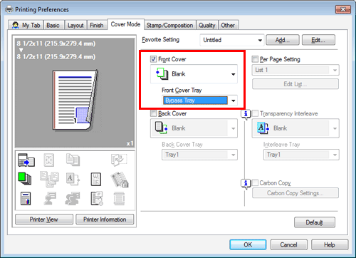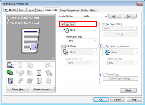 To print the cover on a different type of paper, select the [Front Cover] check box on the [Cover Mode] tab.