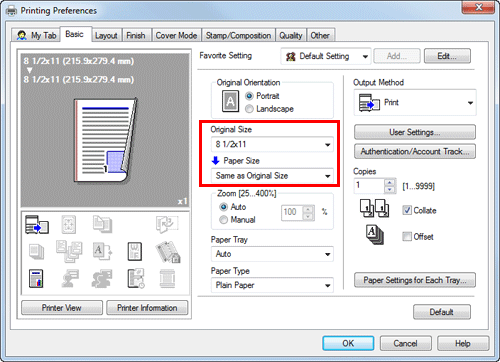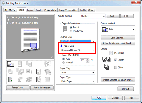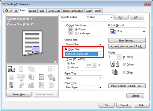 In [Paper Tray] on the [Basic] tab, select one other than [Auto].