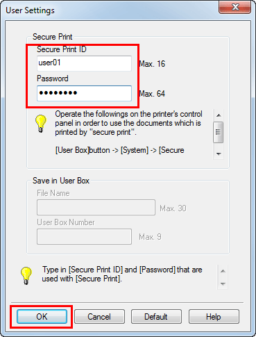 Enter the [Secure Print ID] and [Password], then click [OK].
