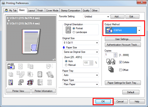 With the Secure Print function, a password is assigned to the document. Enter the password on the Control Panel of this machine to print the document. The ID & Print function enables printing of a document upon entry of the user name and password registered for user authentication. Enter the user name and password on the Control Panel of this machine to print the document.