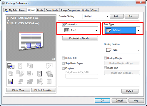 Setting black-and-white printing and 2-sided printing as initial values helps save toner and paper.