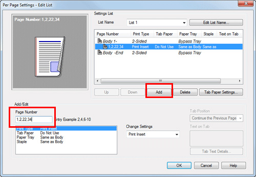 Click [Add] and enter the page number(s) for chapter cover(s) in [Page Number].