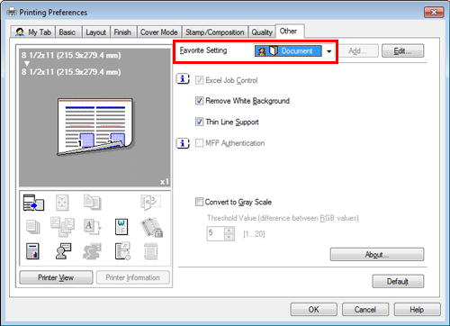 Select a registered favorite setting from [Favorite Setting] on the properties window.