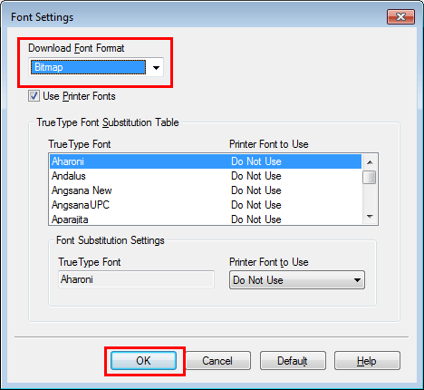 Select [Bitmap] from [Download Font Format], then click [OK].