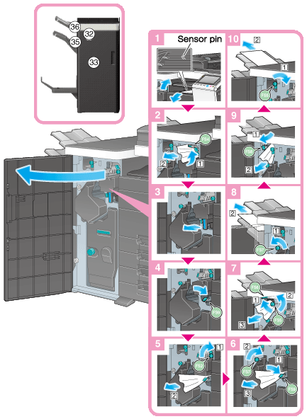 Paper Jam in Finisher FS-535 (Only for bizhub C554e)
