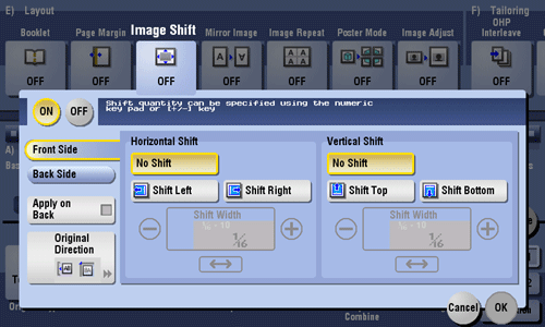 Adjust the image position on the print paper, by shifting the original image in horizontal or vertical direction.
