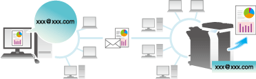 If you send an E-mail to the E-mail address of the machine, you can print a PDF, Compact PDF, JPEG, TIFF, XPS, Compact XPS, OOXML (.docx/.xlsx/.pptx), or PPML (.ppml/.vdx/.zip) file on the computer using the machine without using the printer driver.