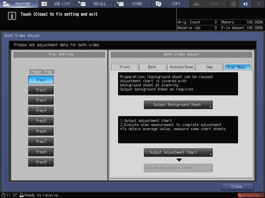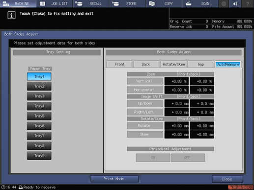 This section describes how to adjust after pressing Both Sides on the MACHINE screen.
