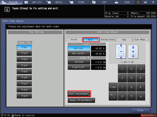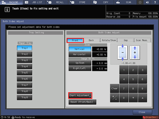 mark is printed on the front side <Front Side> so that you can recognize which tray output the chart. For details, refer to Chart.
