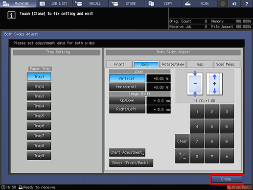 Because the positions of both sides can be adjusted by only entering measurement values, this adjustment is useful for 2-sided printing with a new paper type or when the amount of misalignment between both sides is unknown after changing the paper in the tray.