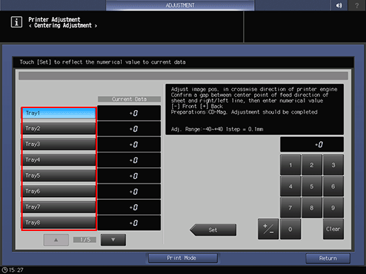 If any adjustment is required, press Exit PrintMode to return to the Centering Adjustment screen.