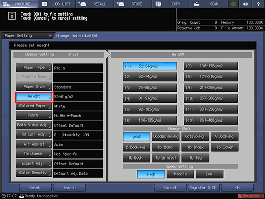 Select the applicable paper weight from the Weight on the right pane of the screen.