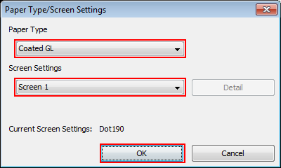Set the Paper Type and Screen Settings on the Paper Type/Screen Settings screen and click OK.