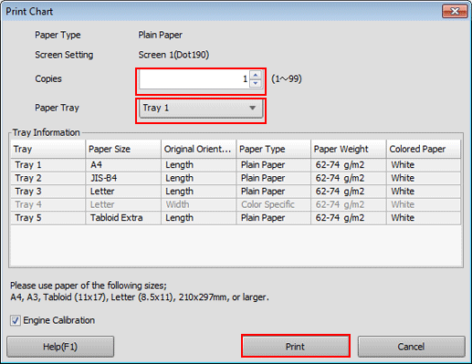 On the Print Chart screen, set the Copies and Paper Tray. After setting, click Print.