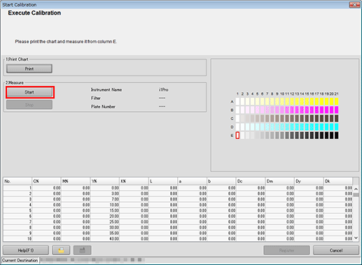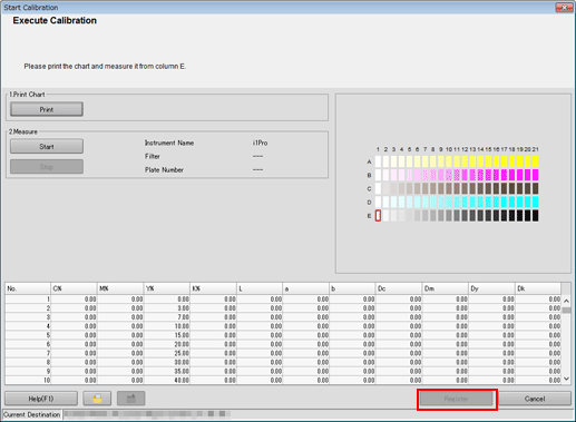After you finish the chart measurement, click Register on the Execute Calibration screen.
