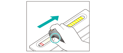 Place the measurement guide plate flat on the chart. Press and hold the button on the instrument and when it beeps, while holding down the button slide the instrument from the top left patch toward the right.