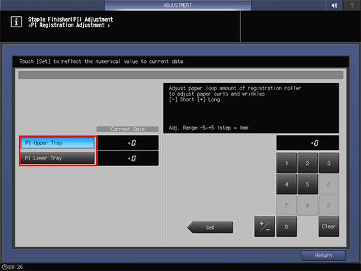 The screen returns to the Staple Finisher(PI) Adjustment Menu screen.
